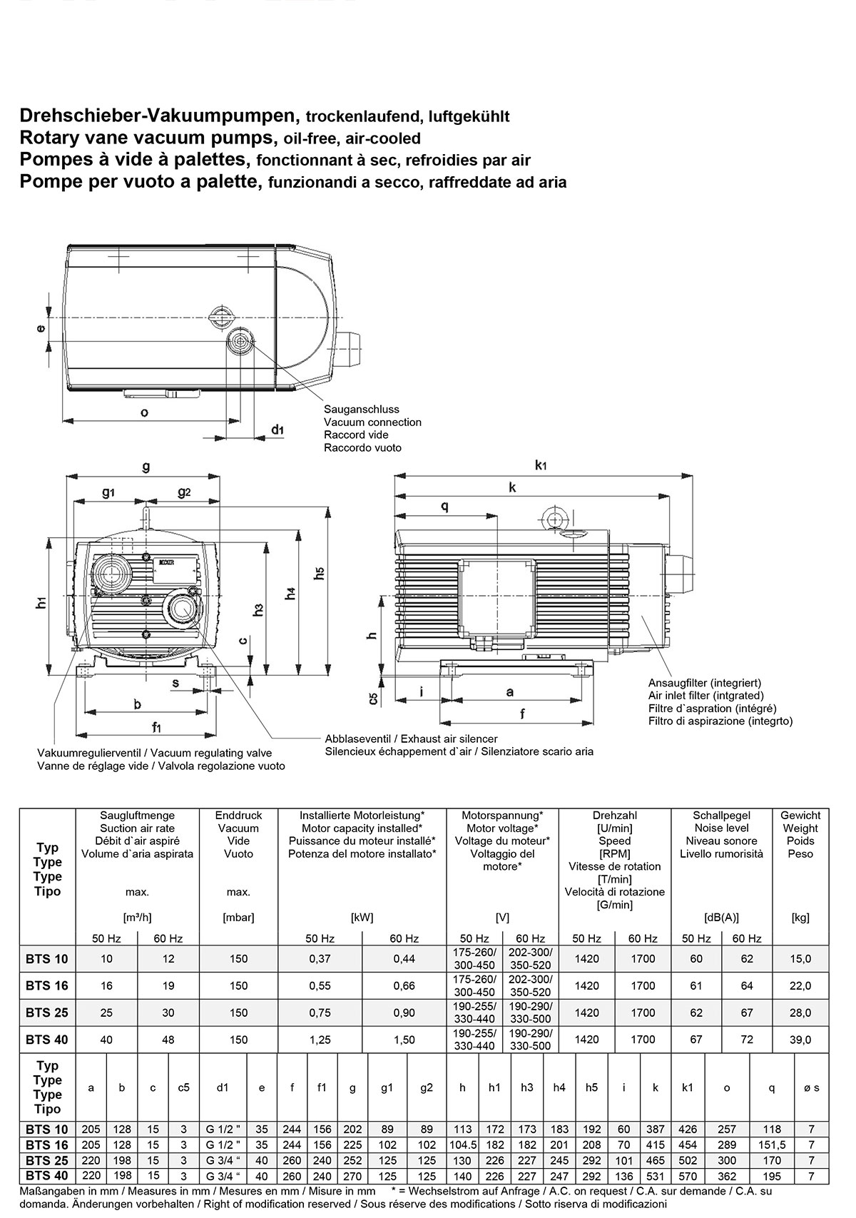 BTS干式真空泵BTS10-40真空泵說明書
